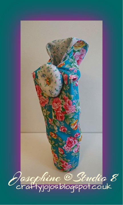 i would like to show you this model. It has got a detachable fabric flower and a fabric button, so you can easily change the look of your bottle bag.